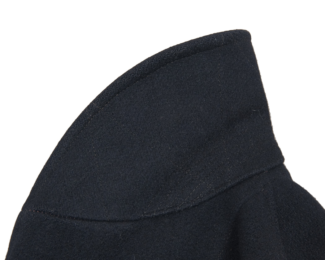 ステッチは、襟腰(襟が立つ部分)と、そこから先、返る部分とでステッチの入れ方が変えられています。
