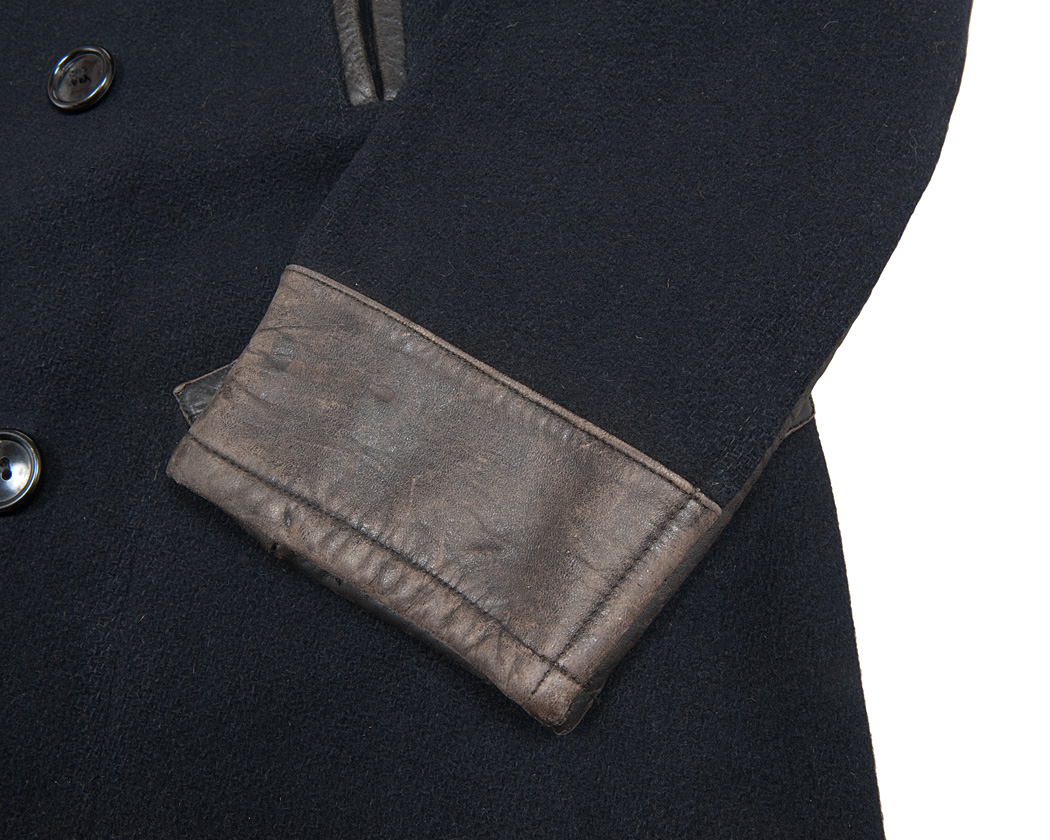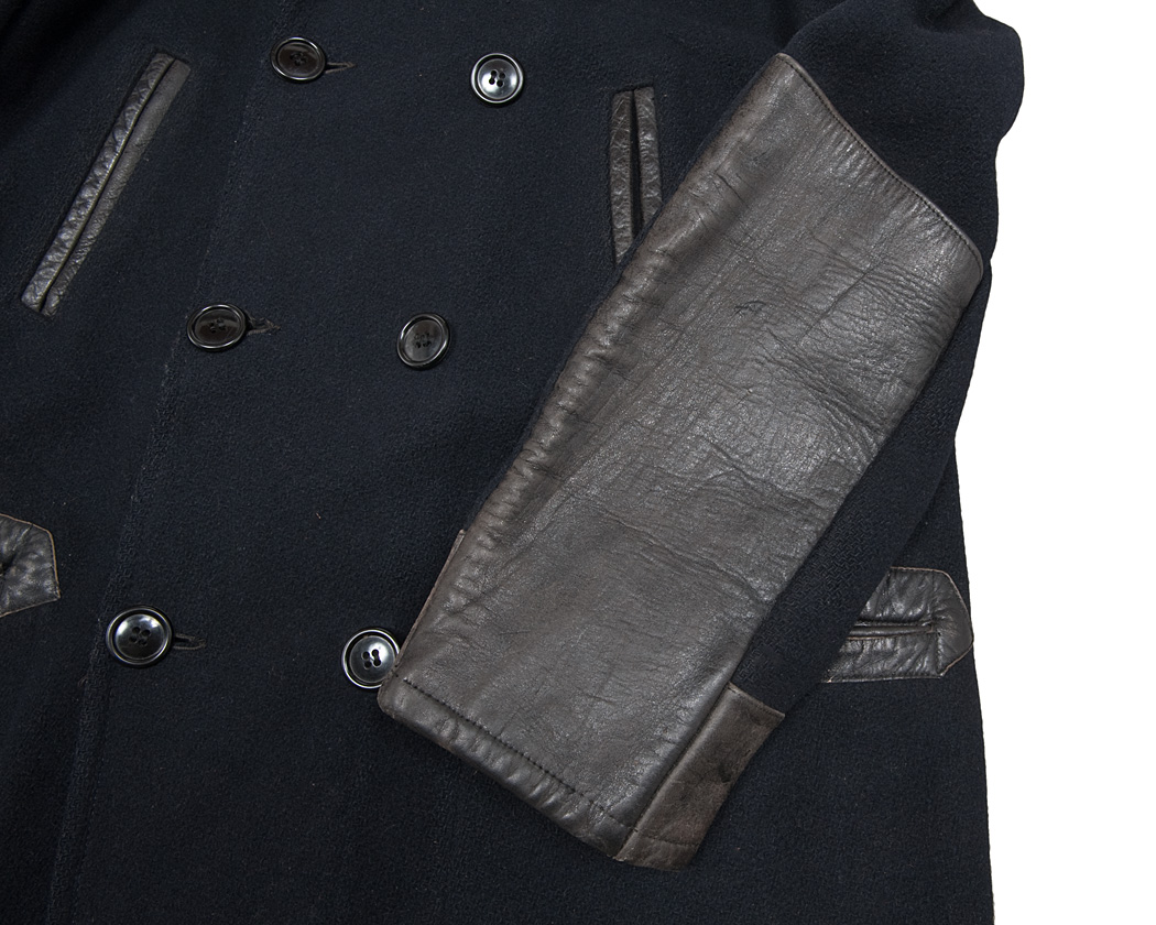 フロント側は小さく、肘側はすれやすいので大きな革が使われています。