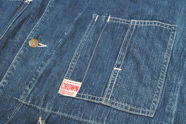 角には特徴的な "THE WORLD WORK IN CROWN OVERALLS UNION MADE" と書かれたラベルが。
