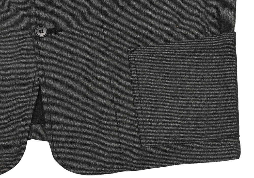 裾周りはテーラードジャケットらしい丸みを帯び、また前下がりもついています。