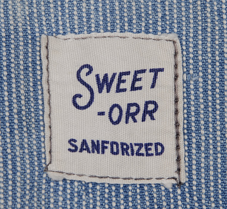 左胸のラベルにはメーカー名SWEET-ORRとSANFORIAZEDとのみ記載されています。