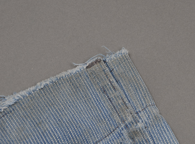 縫い終わり(逆側では縫い始め)部分には、ほつれて袖口がバラバラにならないように、カンヌキ止めが打たれています。