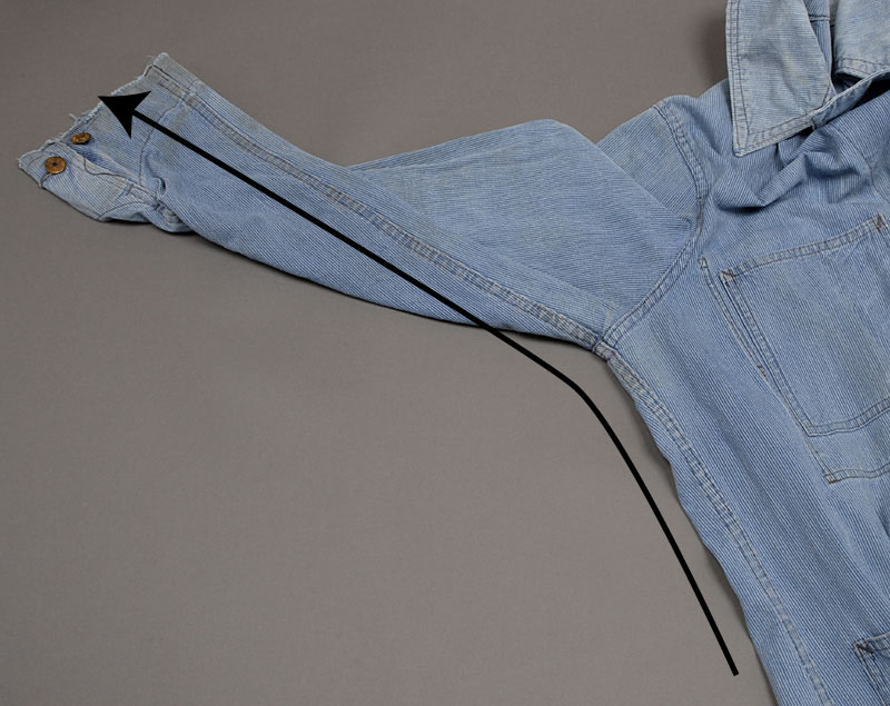 まるでデニムジャケットのように脇の下からそで口まで、一気に巻き縫いされています。