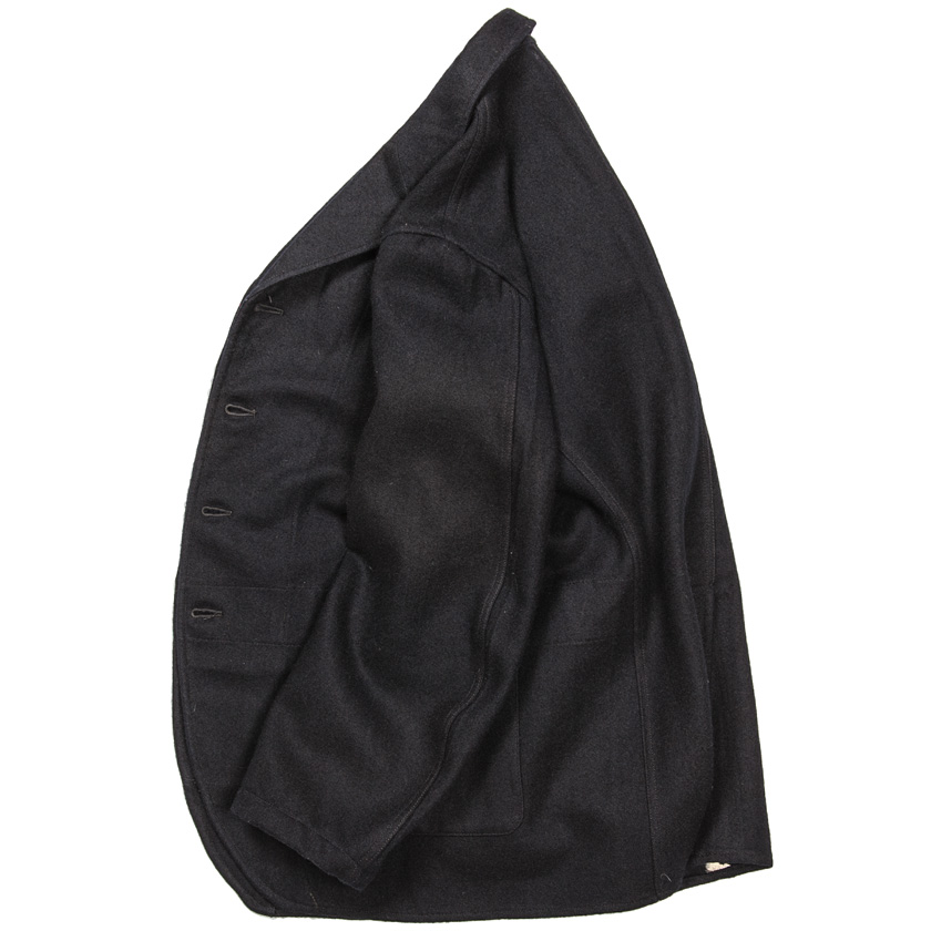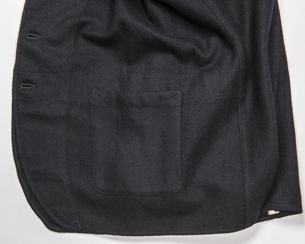 これだけ太いのでわかりづたいのですが、前振りのある袖、前下がりのついた裾、フロントのラインから綺麗につながり返っているラペル。
