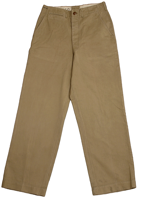 トラウザーズの定番、1945年のパターンデートが記載されたアメリカ軍のチノパンです。