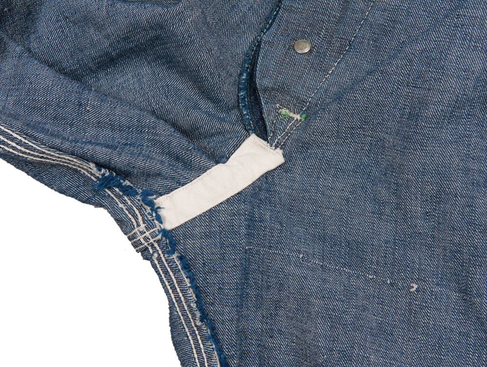 小股(開きどまりより下)を別布を地縫いして倒す方法で始末しています。