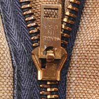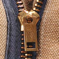 地味ですが、ファスナーの横、ファスナーテープが綿なのでダックと共に色落ちし、やわらかくなり、落ち着いた風合いが出ています。