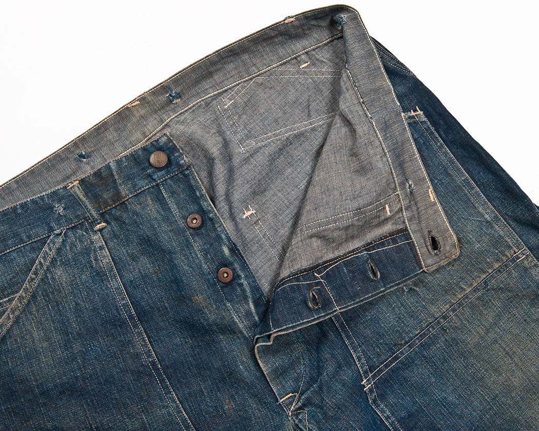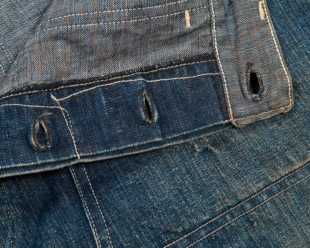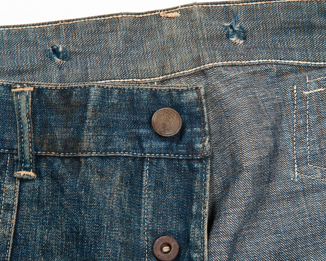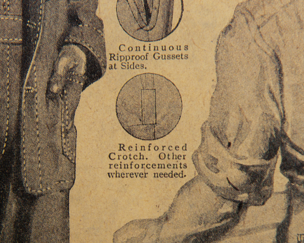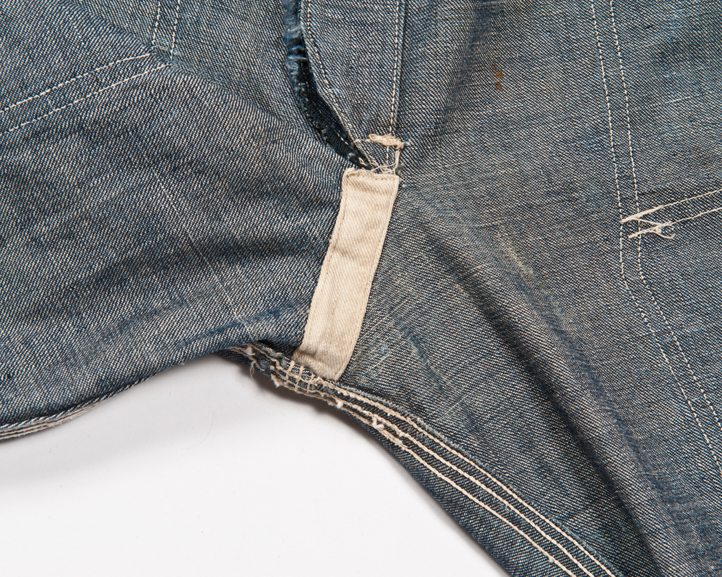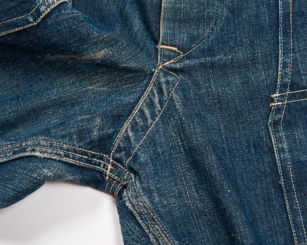 これもこの年代、ヘラクレスの特徴の一つ。フロントの一番下のボタンからさらに下、俗に「小股」や「クロッチ」と呼ぶ部分に付けられた当て布。