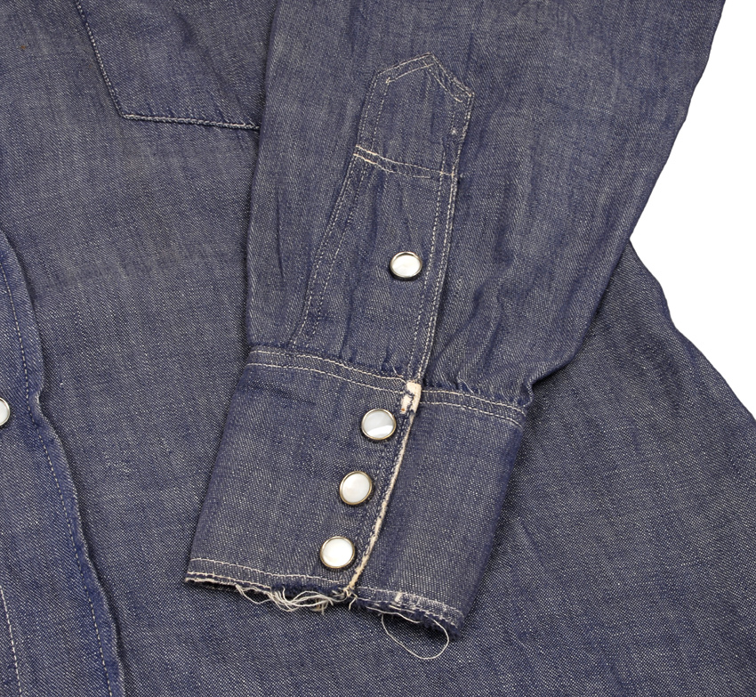 カフス周り全体に入れられたシャーリング、太く、独特な形状をした剣ボロ。カフスにも芯が入れられていますが、長年着こまれたため芯が露出してしまっています。