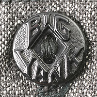左胸ポケットのみにつけられた、ビッグヤンクの樹脂製刻印入りボタンです。