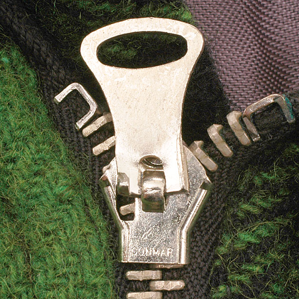 更に、ファスナーを止める部品には「コ止め」と呼ばれ、50年代ぐらいまでのTALONやCONMARに見られた形の止め具を使っています。