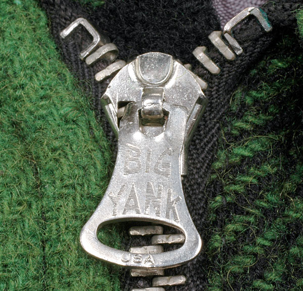 CONMAR(コンマー)社のピンロック、ベルタイプとも呼ばれる形のファスナーで、引き手には筋彫りのようなラインの入ったBIGYANK刻印が入っています。
