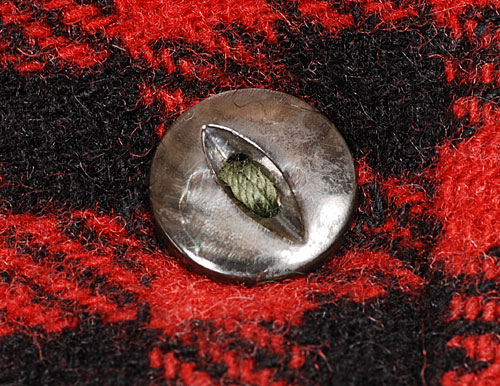 ボタンは貝ボタンで、「ネコ目」と呼ばれる溝が刻まれています。