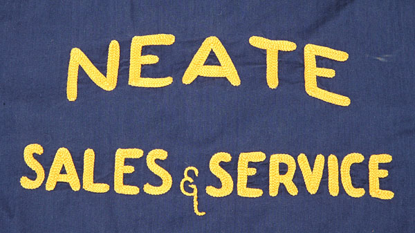 ”NEATE SALES & SERVICE”と入った刺繍は、何かの宣伝のようです。
