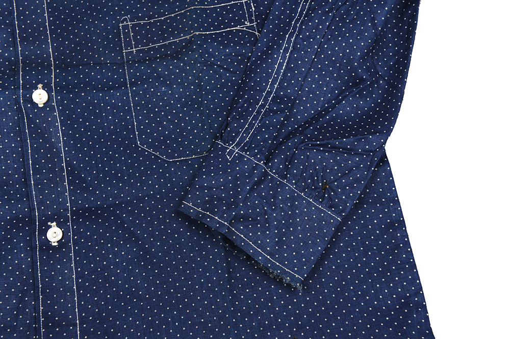 さらに、通常、巻き縫いが終わって、袖が筒状になってからつけるべきカフスを、先につけて、あとから無理やり巻き縫いしています。 そのため、カフスの上まで巻き縫いが走っています。
