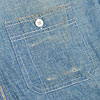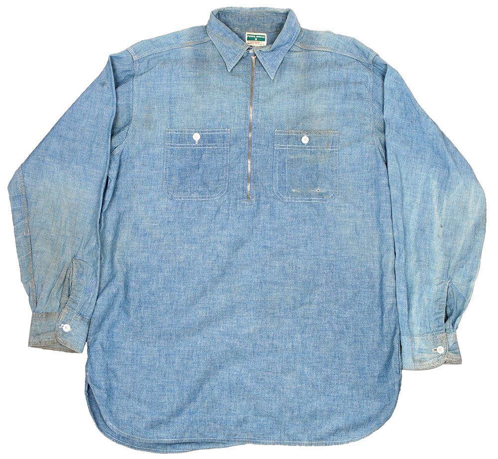 シャンブレーにクッキリと浮かんだオーバーオールの跡に、使い込まれたシャツ独特のやれた風合いがいきいきと感じられます。
