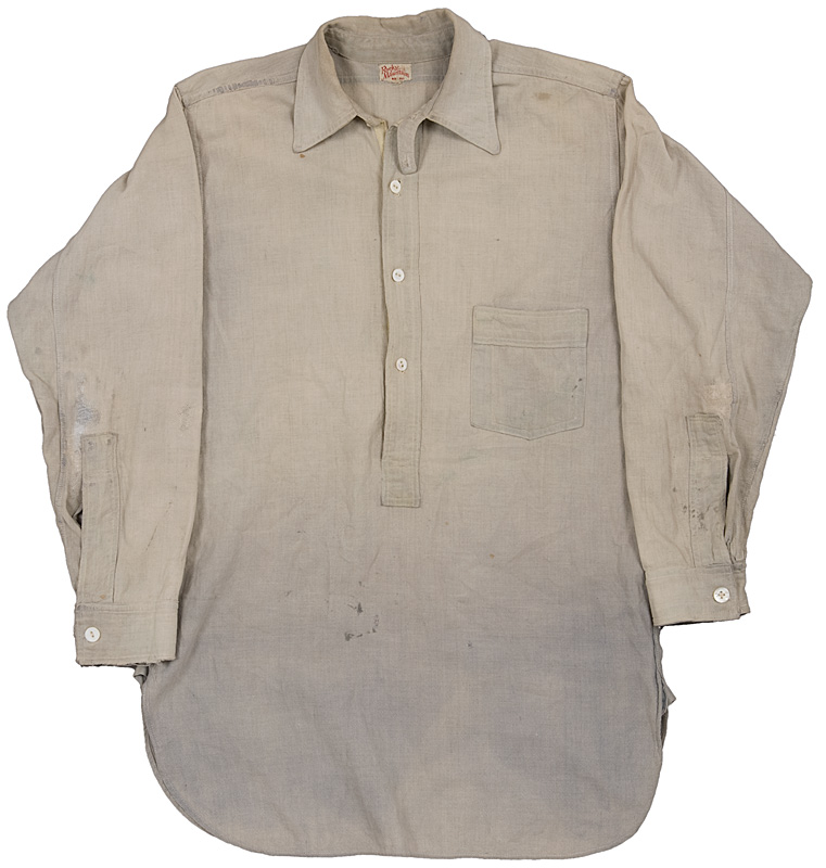 そうはいっても、縦長なシルエット、長いチンストラップ、細いヨーク補強布、二枚ものの袖と、古いワークシャツの特徴がよく出たシャツです。