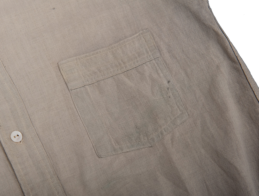 フロントポケットは左胸のみ。ポケット口は前立てと同じミシン・同じ金具で縫われています。