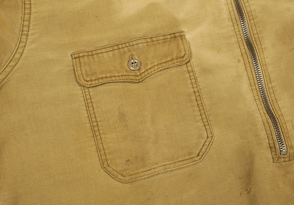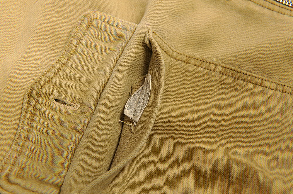 ユニオンチケットがポケット口に縫いつけられていますが、詳しい内容は読み取れません。