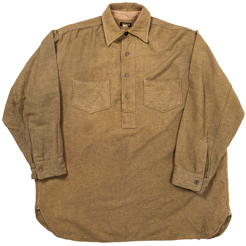 SPAIDEのウールシャツ。プルオーバーにホームベース型の二つポケット。袖は2ピースと古いシャツの特徴を備えています。