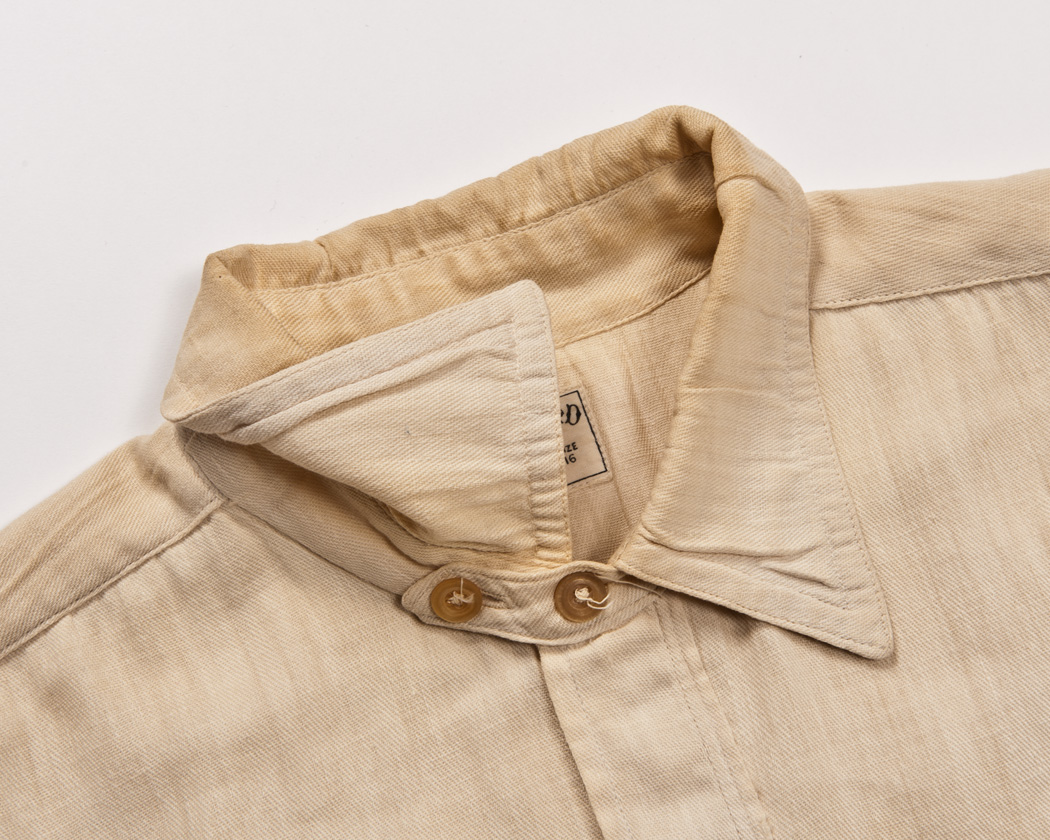 羽襟も2枚ものを縫い返しており、襟先に向かうカーブもきれいに描かれています。羽襟周りのダブルステッチは8ミリ程度の間隔でいくぶん太め。