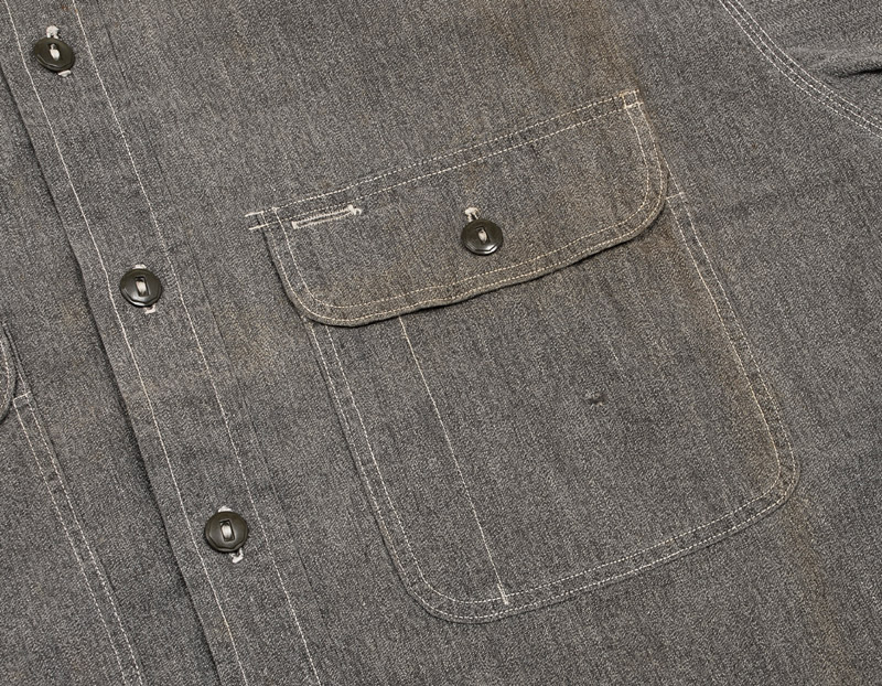 胸ポケットはラウンド型のフラップ付き。