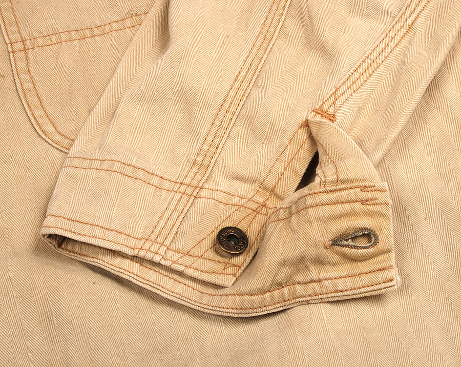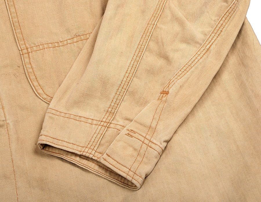 ダブルステッチで付けられた見返しは独特のステッチワークが現われています。