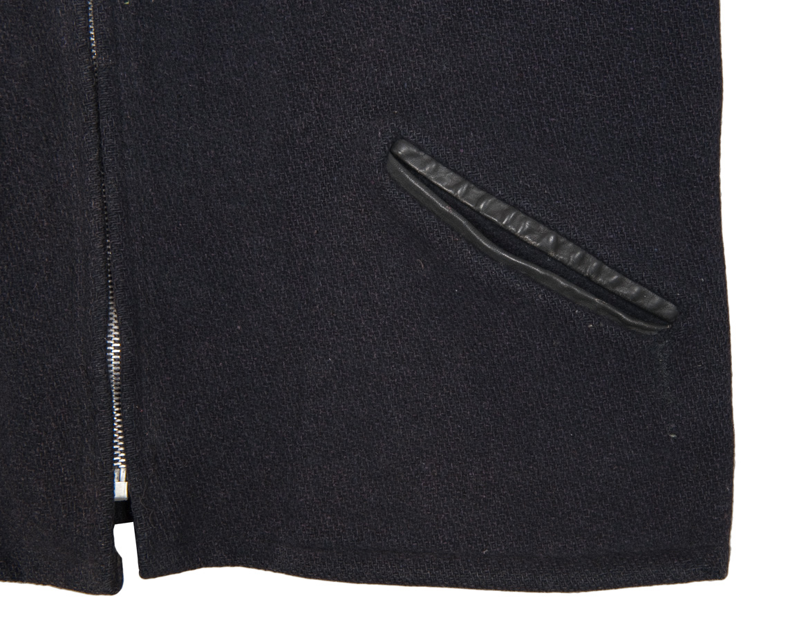 腰のスラッシュポケット。ポケット口の玉ぶちがレザーで補強されています。