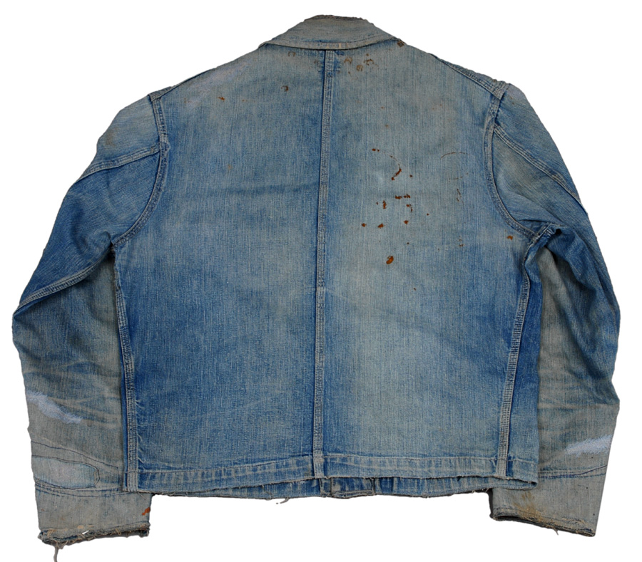 バックから見ると、激しい色落ち、一方で色の残っている部分がよくわかります。