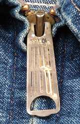 胸ファスナーにもTALONの刻印があり、この形状のファスナーは、通称「涙型タロン」と呼ばれています。