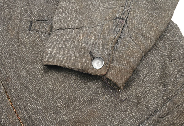 身頃のポケットは玉ぶちポケットです。生地同色系で縫われているので、ステッチが目立たず、シンプルな印象です。