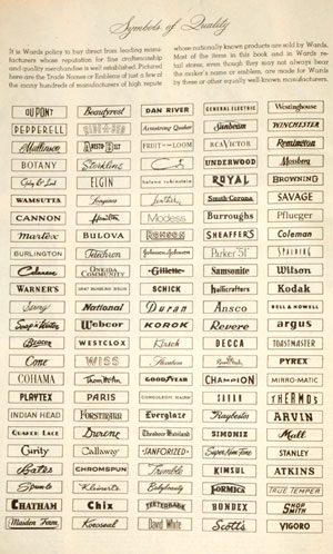 これらは、そのまま売られる場合、ブランドのネームとモンゴメリーワードのネームとダブルネームで売られる場合、モンゴメリーワードのネームのみで売られる場合など、様々でした。