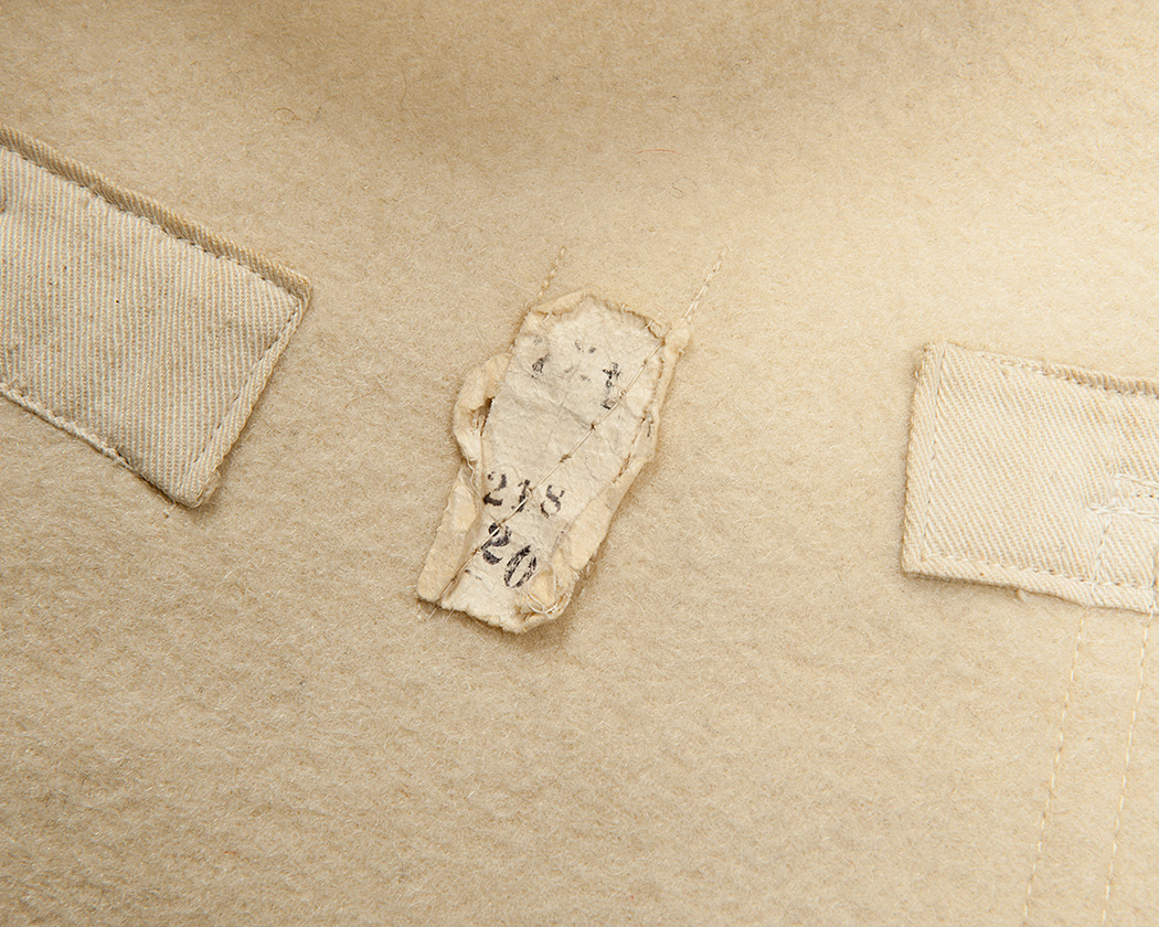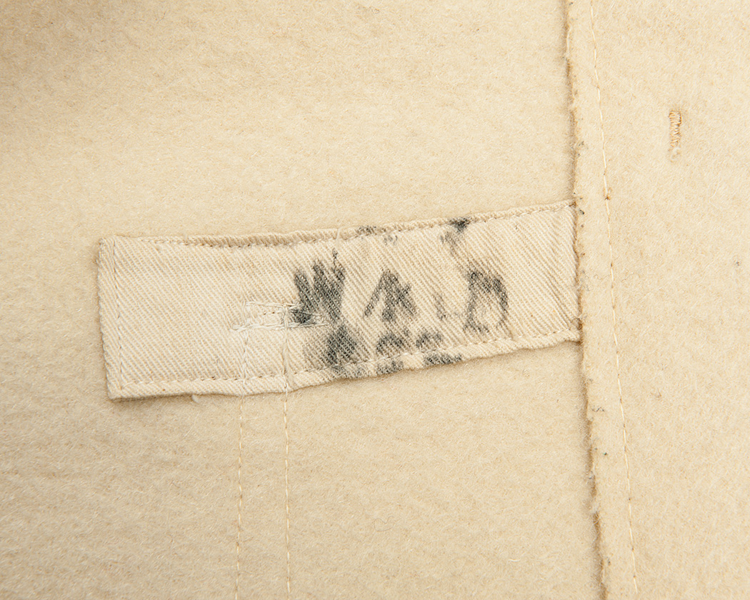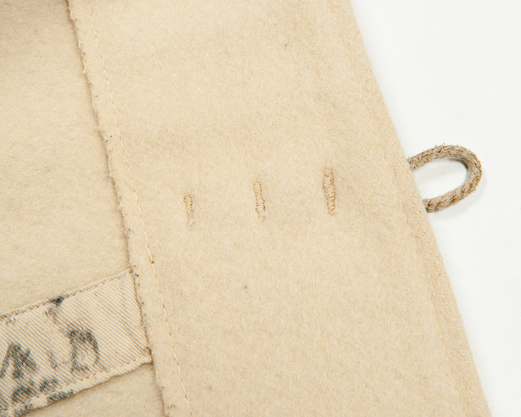 見返しに縫いつけられたラベル。