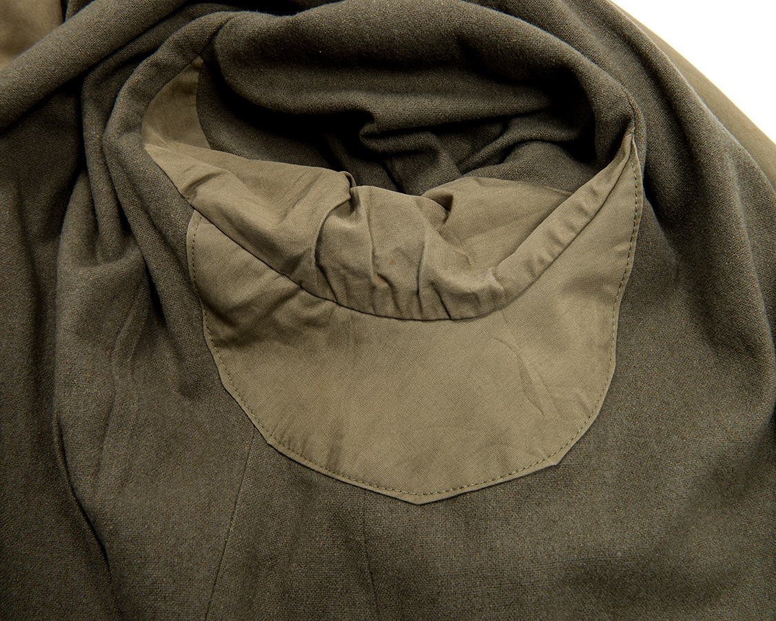 裏地はカタログでは「フランネル」とされていますが、我々が現代想像する肌触りの良いものではなく、ごわごわとしたいかにも粗末なウール生地です。