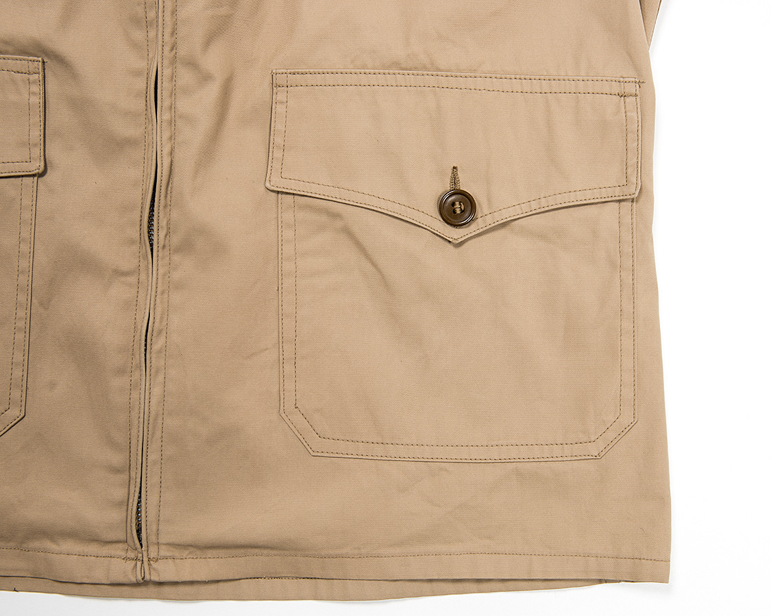 胸には左右フラップポケット。左胸のフラップは一部開いていてペン刺しになっている。 このフラップの形状もコントラクターごとに微妙な差があり、本個体は個人的に特に美しいV字を描いていると感じる。
