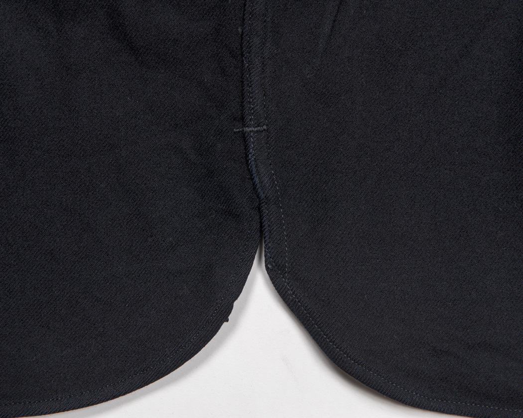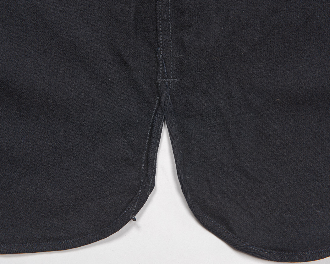 着丈は長めなので、脇はかなり深く切り上がっています。マチは無いのですが、始末自体はマチと同じ巻き縫いで始末しています。