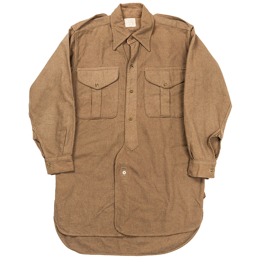 一般的には「イギリス軍物」とか「ブリティッシュミリタリー」などと呼ばれていますが、ブロードアロー自体、官給品である事を示してくれるだけでそれ以上の情報をラベルから読み取れないので「ブロードアローマークのついたシャツ」としました。