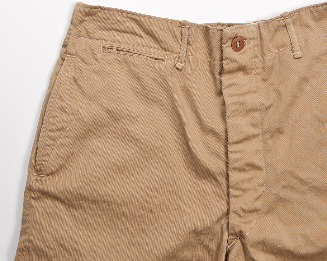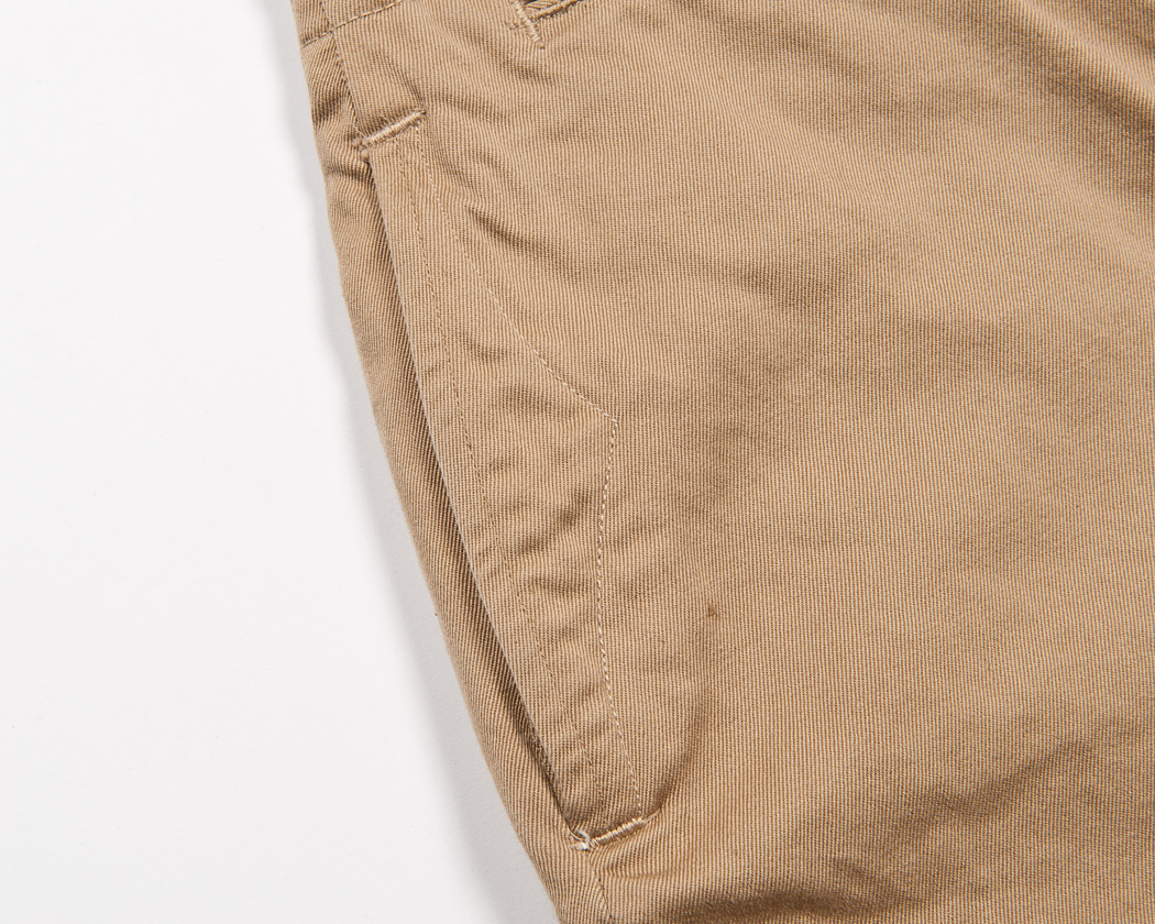 細い玉ぶちコインポケット、細いループ、一見すると普通のチノパン と変わらないように見えますが、一番の特徴は脇ポケットのステッチ。