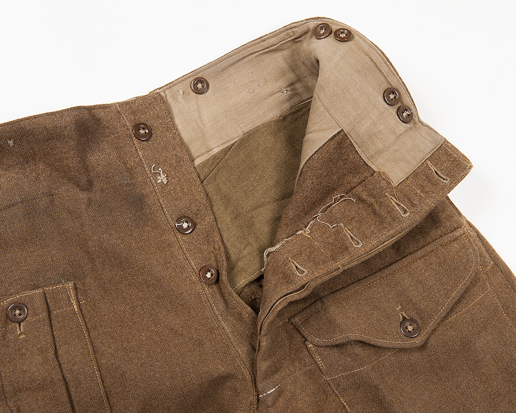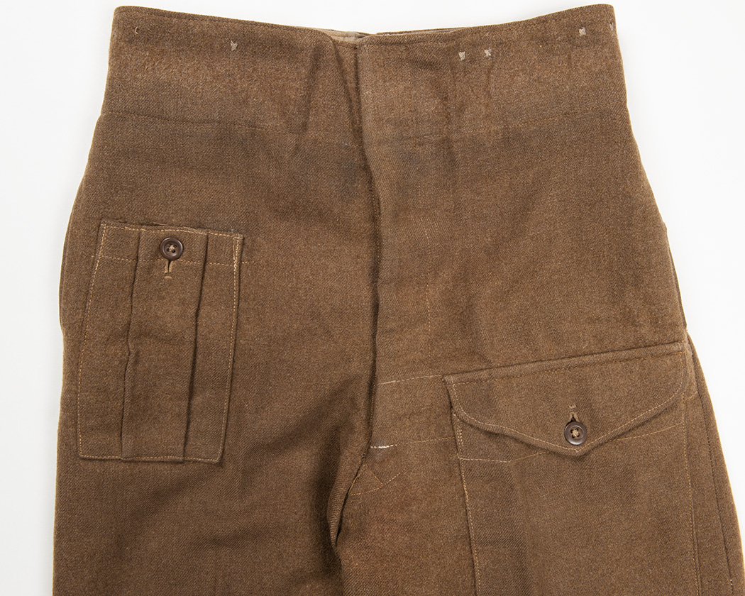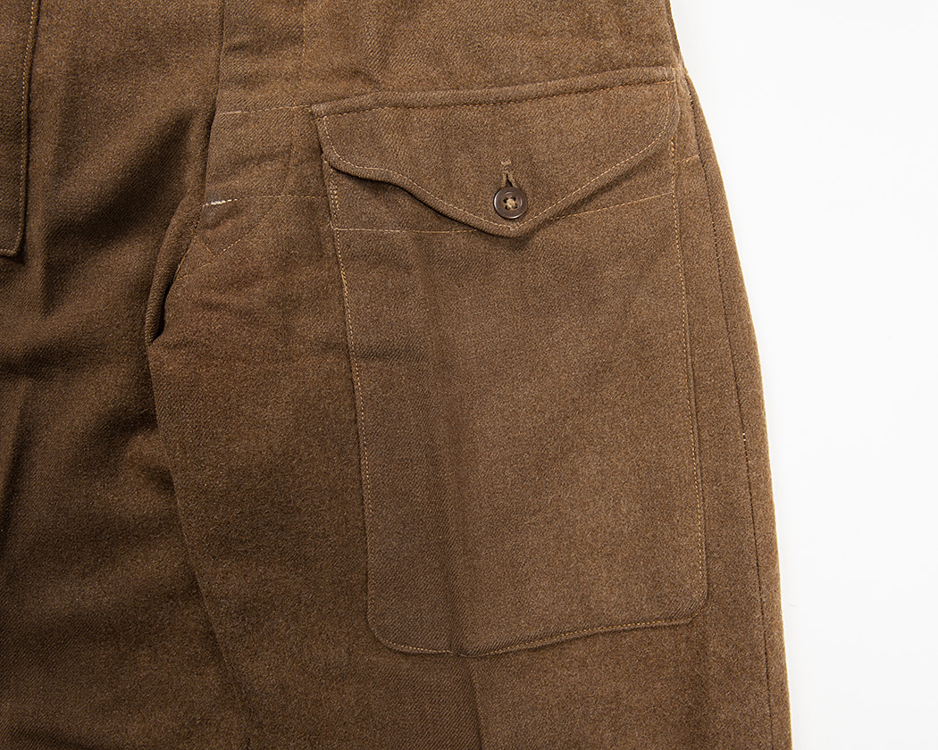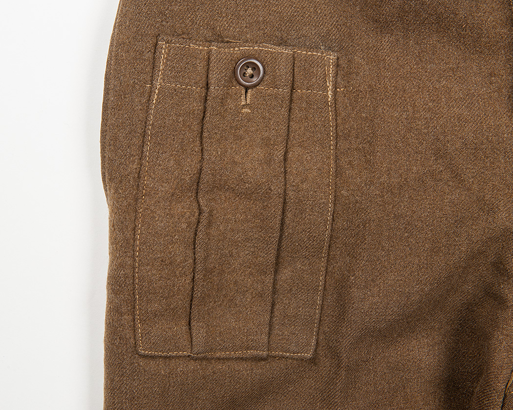 左身頃側、当て布つけステッチは表まで貫通して身頃に走っています。完全に「機能性」を重視した仕様で、単に衣服に「調和」とか「美しさ」を求めるならば絶対にやりたくない方法です。