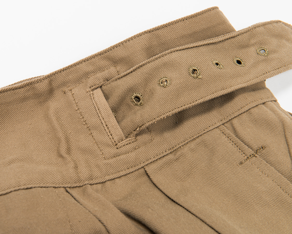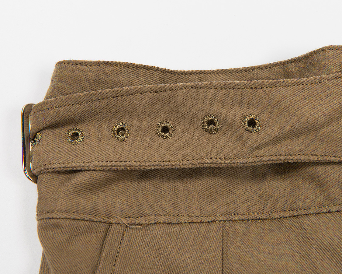 ウェストはベルトで調節・止めるように成っていて、右前側はベルトがウェスト途中から貫通して表に出せるように穴が開けられています。