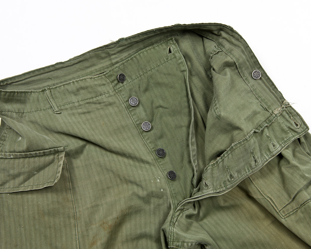 フロントはボタンフライ。13スターと呼ばれる、星の刻印が入った打ちこみボタン。