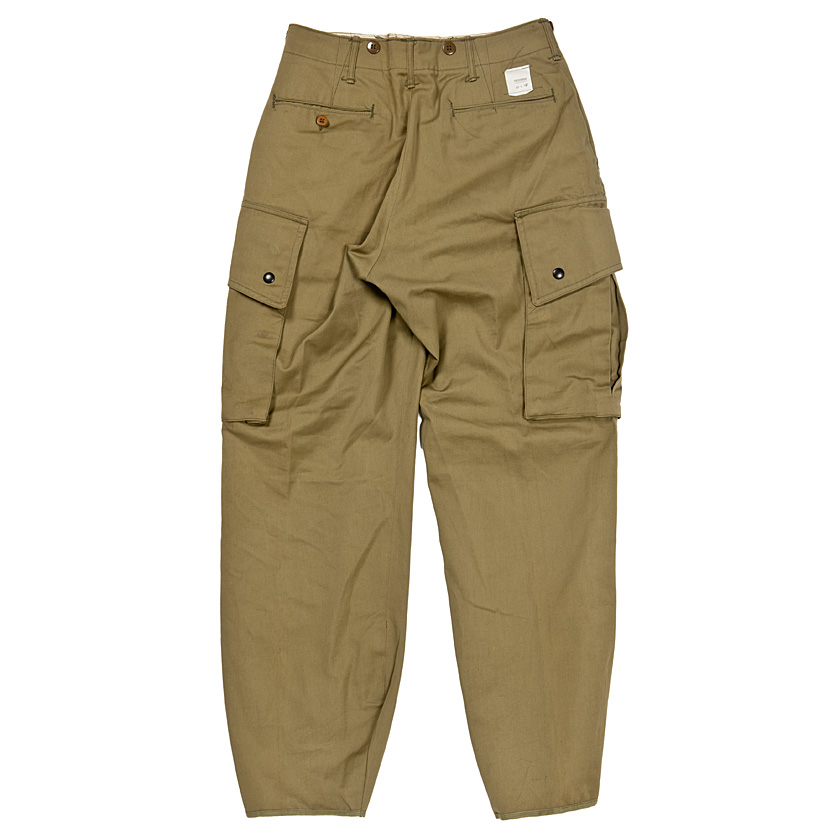 左ポケットのみボタンホールがあり、右側にはスペックラベル。ウェストにはサスペンダーボタンと、少し良くできすぎてはいないかと不安になるほど、各ディテールがデザインとしても良いアクセントになっています。
