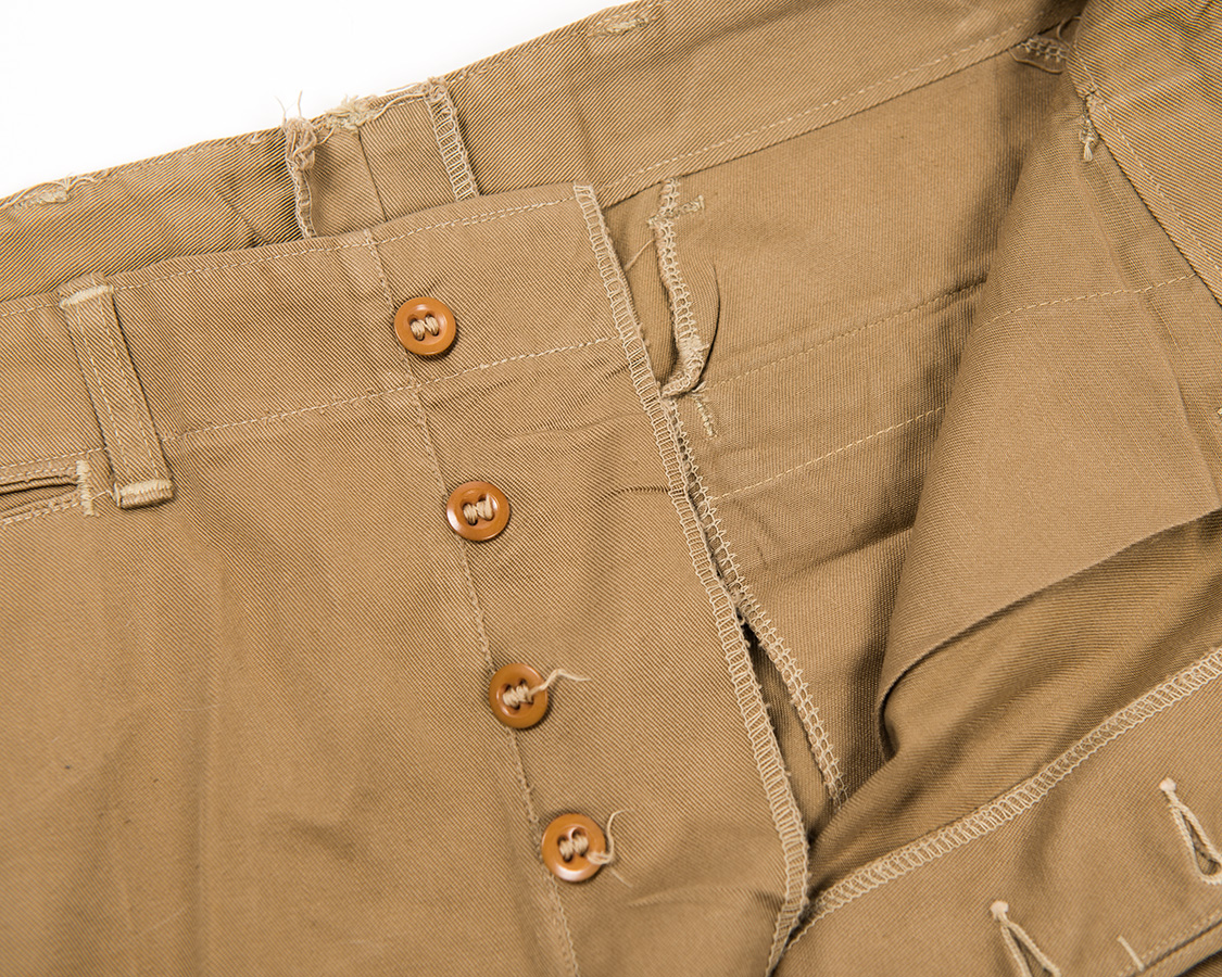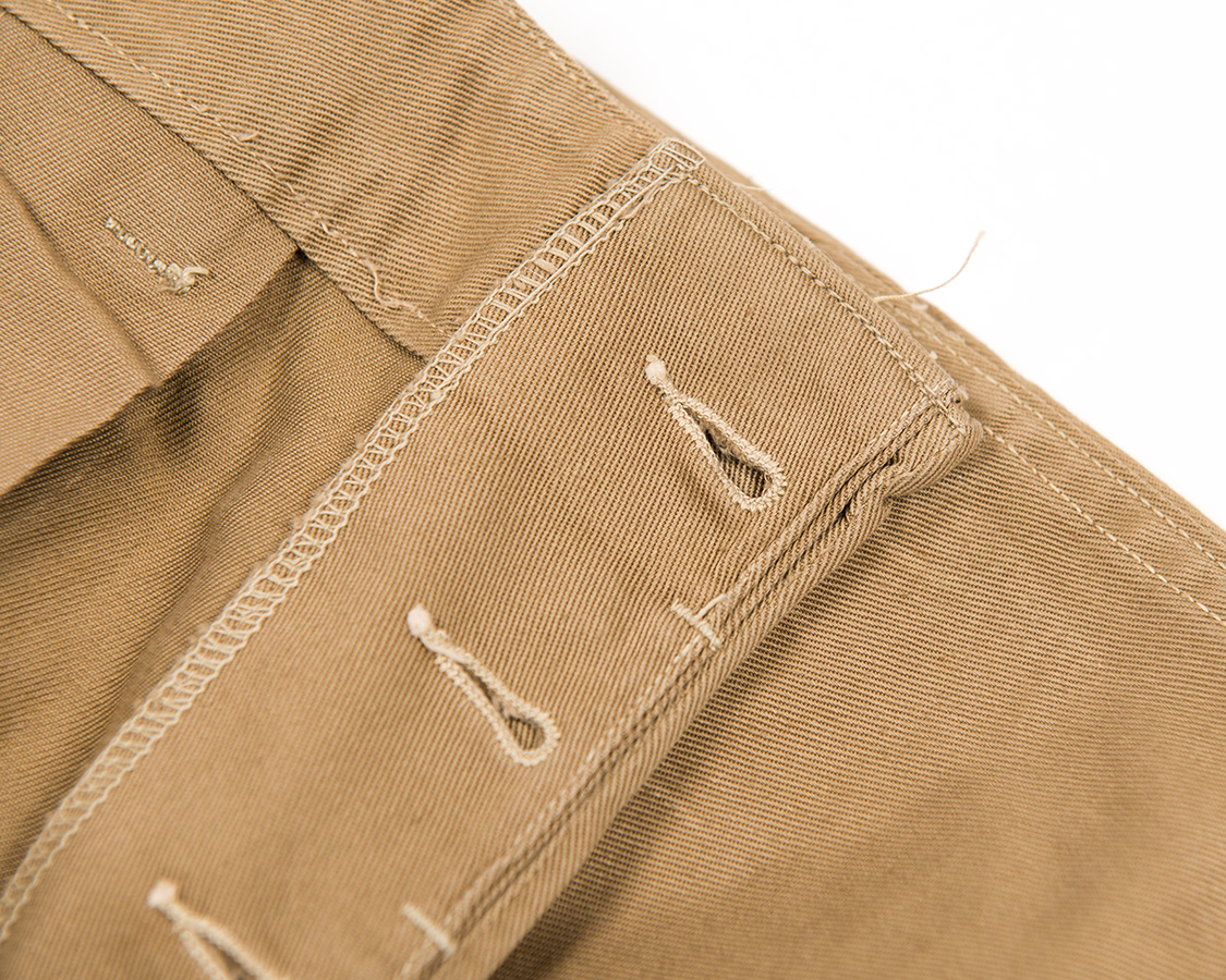 ヒヨクは見返しにカンドメで止められる、おなじみのトラウザー始末。