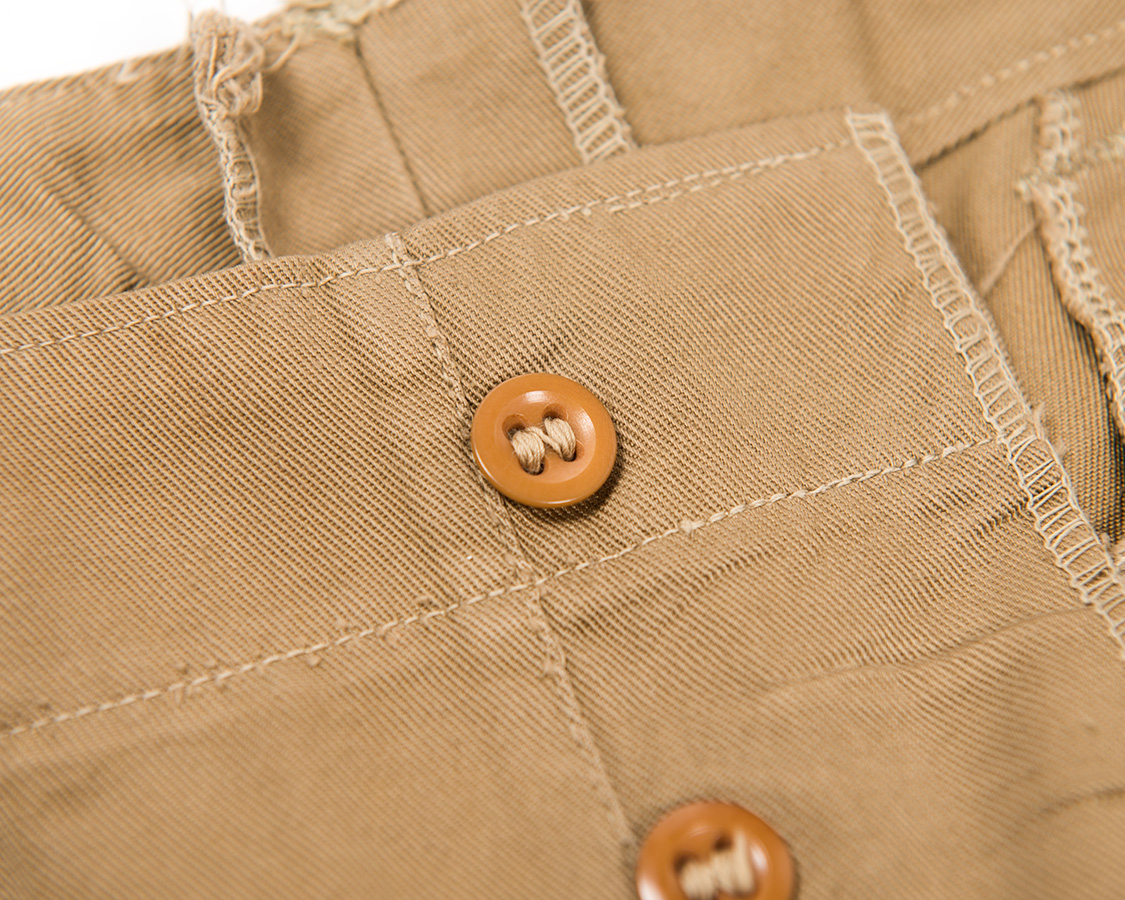 ただ、いわゆるArmy系チノの練りボタンとは形が違うのは一目瞭然です。