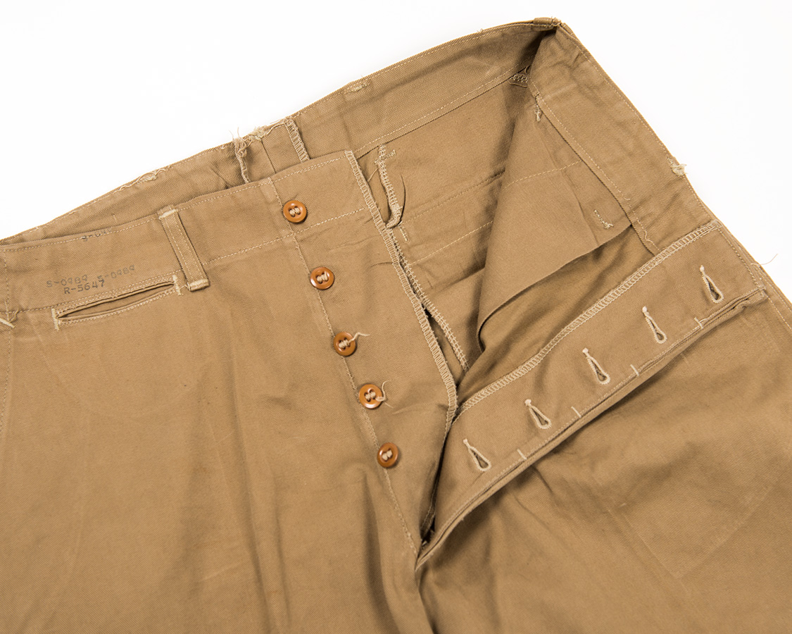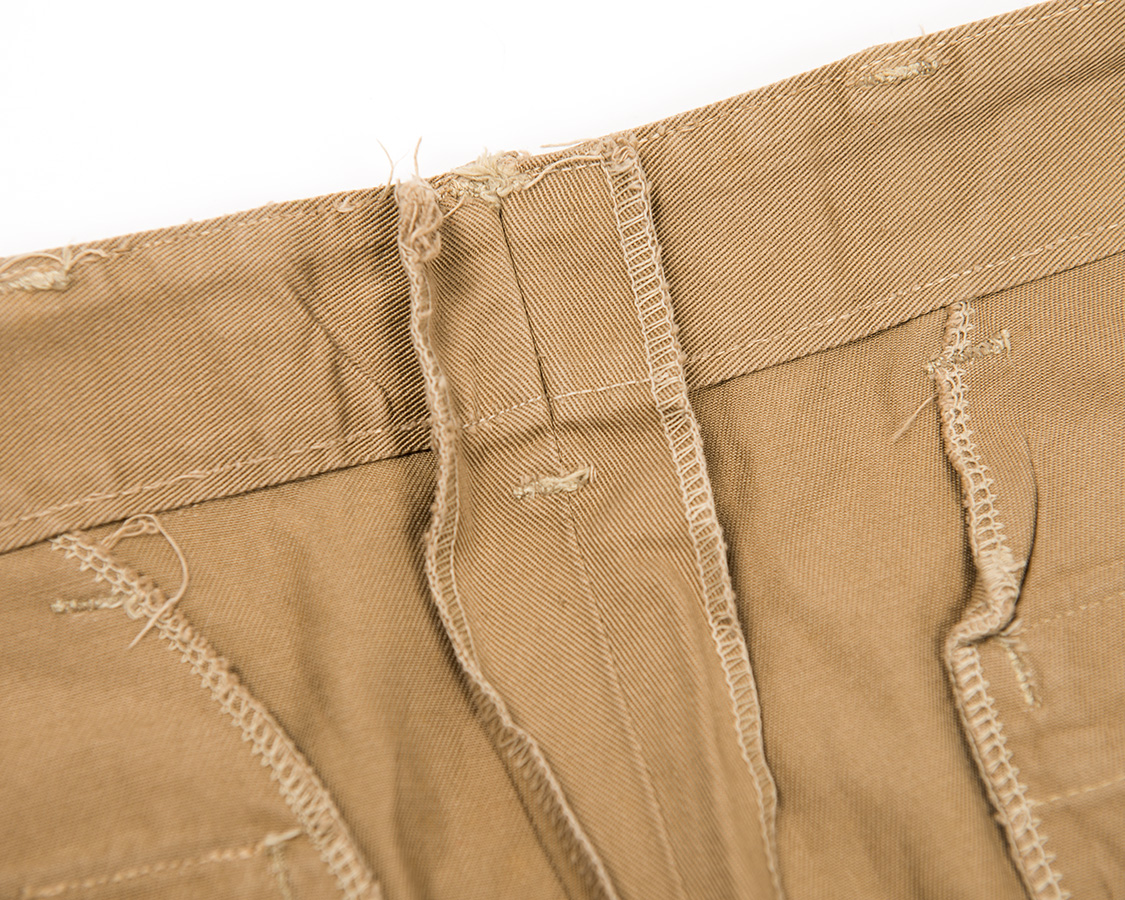 このあたりは、スペック MIL-T-2064A を読んだ限りでは、生産設備の違う工場でも作成出来る用、縫い方に巾を持たせていた事が確認出来ました。そのため、この腰裏もチェーンであったり、今回のようにシングルステッチであったりと違いがあるのだと思います。