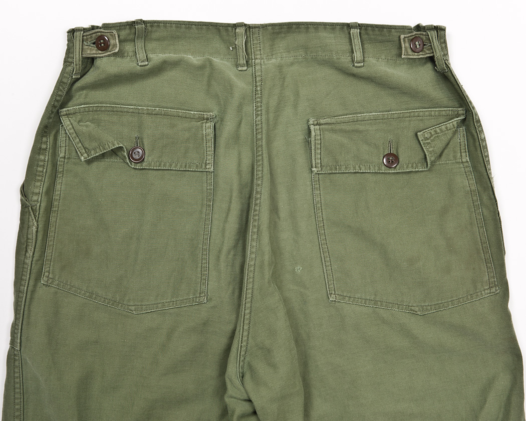 ベルトループは細めの物が使われ、センターは縫い目から脇にずらされています。これは、ループをパンツの上部に挟み込んで縫うため、ずらした方が厚みが分散されるからです。