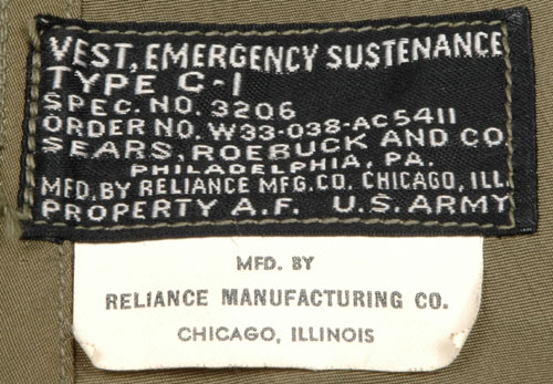 リライアンス社はシャツだけでなく、パラシュートなど軍需製品も多く作っていたため、このベストを作ることが出来たのだと思います。
