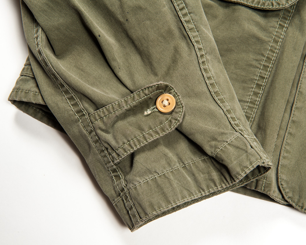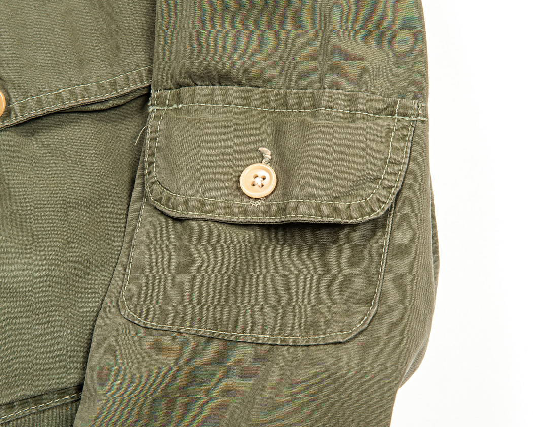 その「アウトドアウェア」と感じると一口にいっても、もっと年代の古いハンティングウェアとも違い、また、もっと後の年代のマウンテンパーカーなどとも違う。ちょうど、真ん中の年代と私は勝手に呼んでいるのですが、その年代を感じるディテールであり、生地なのです。