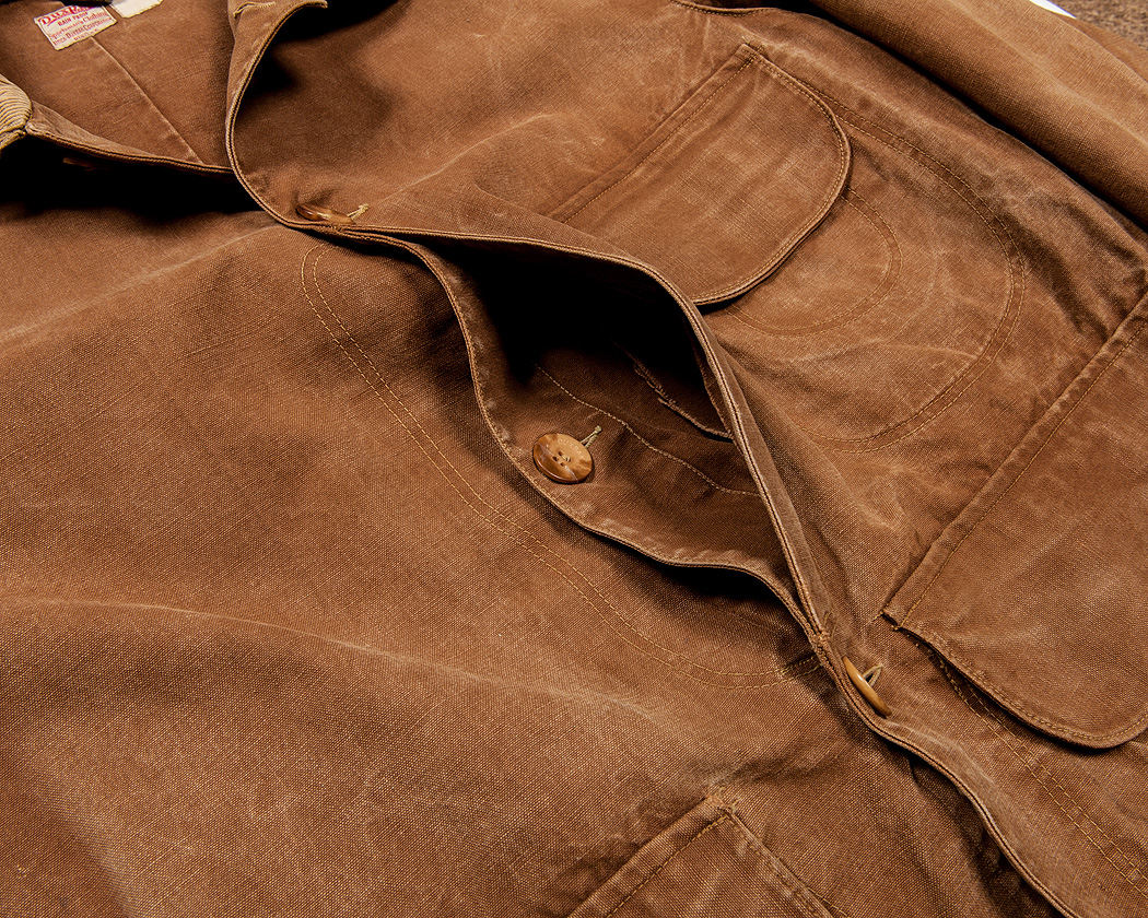 これもハンティングらしいなと思う部分。樹脂ボタンにDUXBAKとネームが入っています。