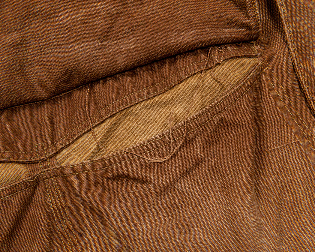 以前紹介したLogger Pants でも同じ手法が使われていました。裏に当て布があるからこその、独特なポケットの作り方です。
